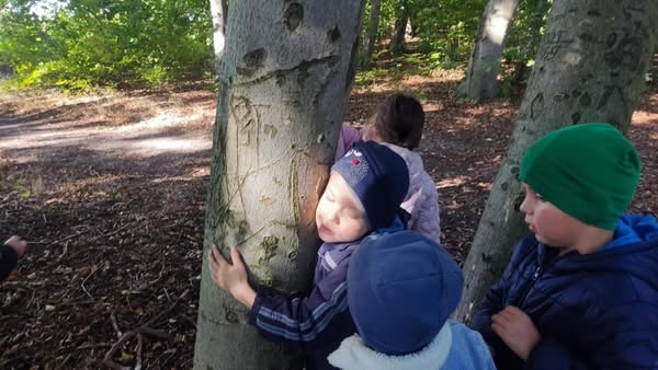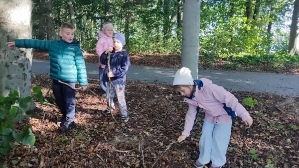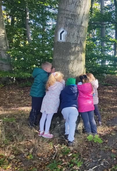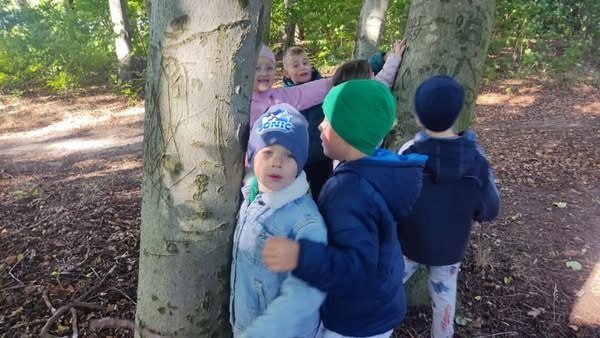 02.10.2025 20:19LasW piątek grupa 6latków wybrała się na wycieczkę do pobliskiego lasu w ramach ogólnopolskiego projektu edukacyjnego "Przytul się do drzewa". Celem wyjścia było budowanie więzi z przyrodą, rozwijanie wrażliwości ekologicznej oraz poznawanie lasu wszystkimi zmysłami. Podczas spaceru przedszkolaki obserwowały zmiany zachodzące w przyrodzie jesienią, nasłuchiwały odgłosów lasu, a także dotykały kory drzew i przytulały się do wybranych pni, zastanawiając się co drzewa chciałyby nam przekazać.